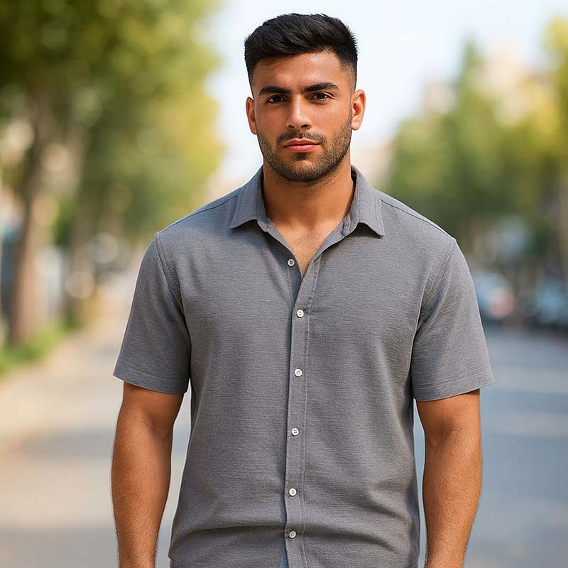 پیراهن آستین کوتاه طوسی مردانه مدل باکسی